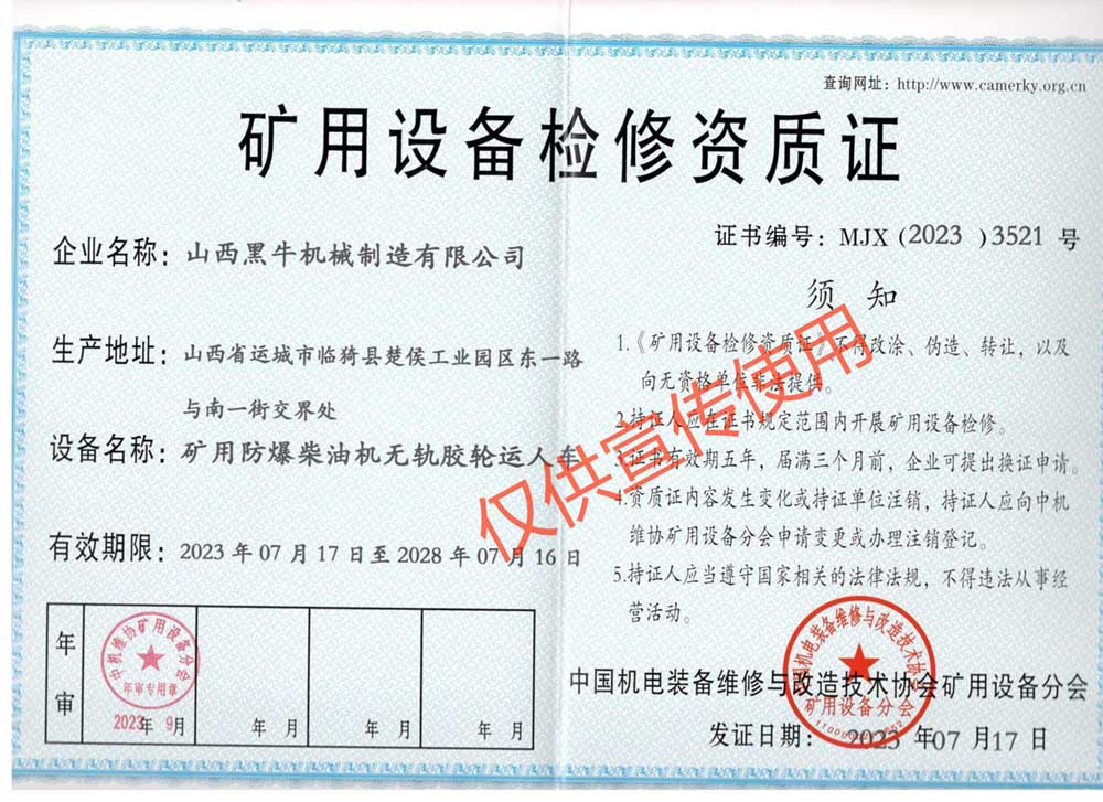 資質(zhì)證書 >檢修資質(zhì)>礦用設(shè)備檢修資質(zhì)證