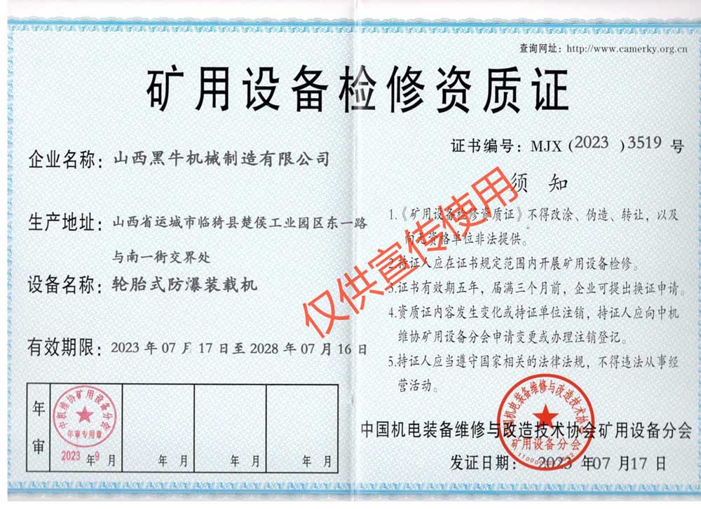 資質(zhì)證書 >檢修資質(zhì)>礦用設(shè)備檢修資質(zhì)證