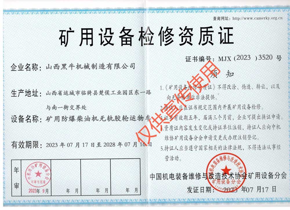 資質(zhì)證書 >檢修資質(zhì)>礦用設(shè)備檢修資質(zhì)證