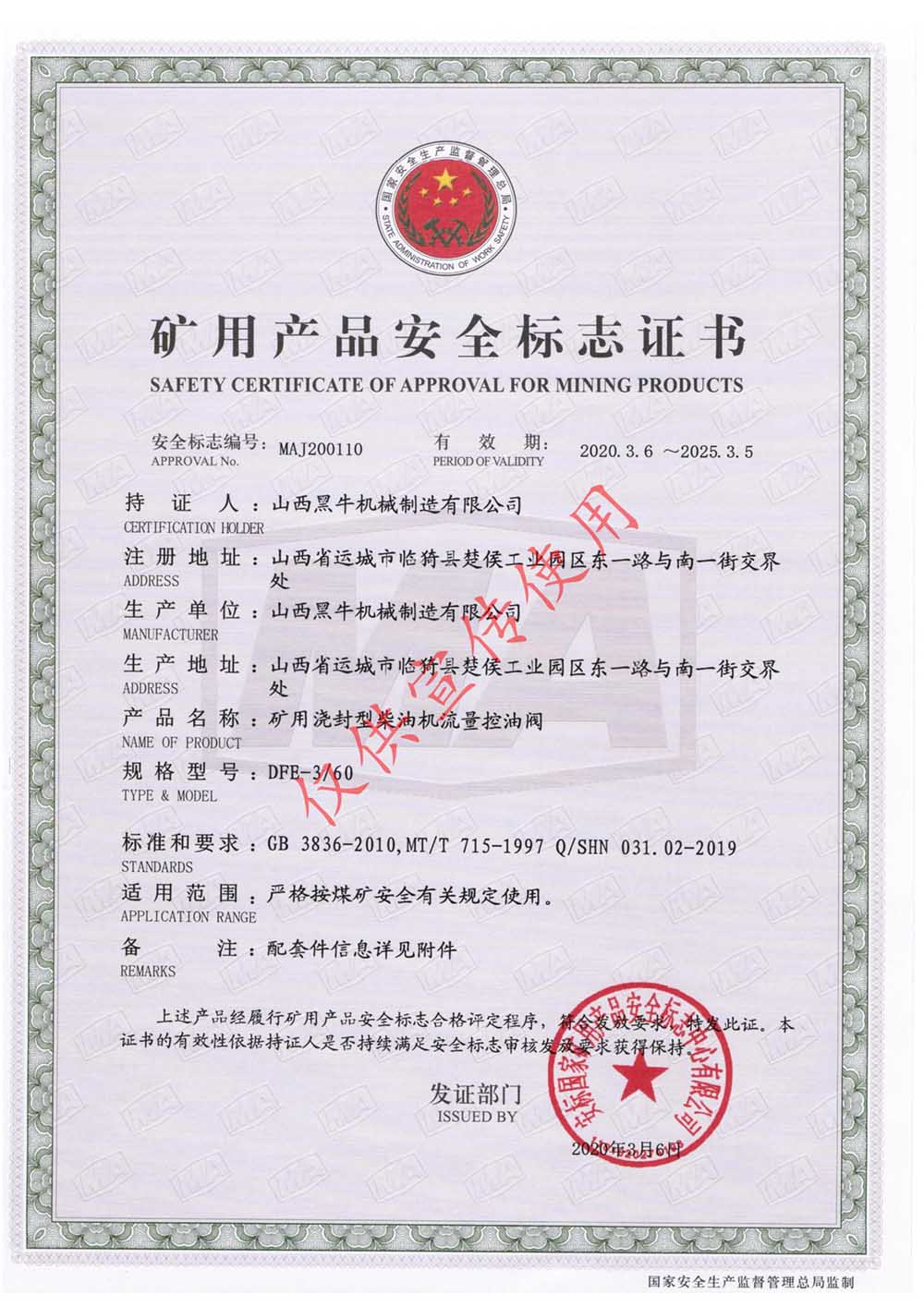 礦用澆封型柴油機流量控油閥